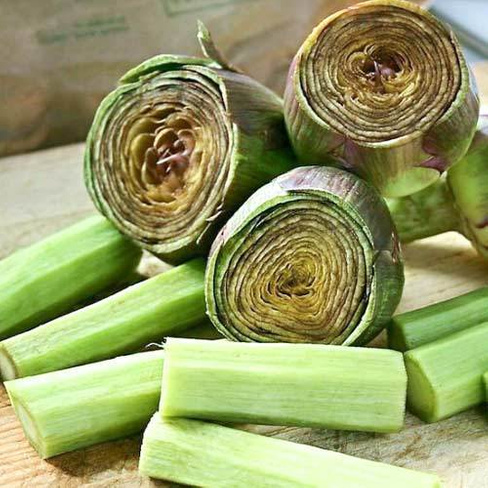 Семена артишока "Белый гигант" (Belyj gigant) для употребления в зимнее время сеют весной в прогревшуюся почву рядовым способом по 3 семени в гнездо, заделывая на глубину 3-4 см. Для получения продукции в конце лета выращивают рассадным способом. Это очень популярный сорт испанского артишока. Широко используется в качестве осеннего и зимнего овоща. Растение от обычного артишока отличается более сильным ростом и развитыми корешками. Черешковатая культура обладает высоким содержанием инулина и используется для приготовления салатов, варки и потребления в сыром виде.