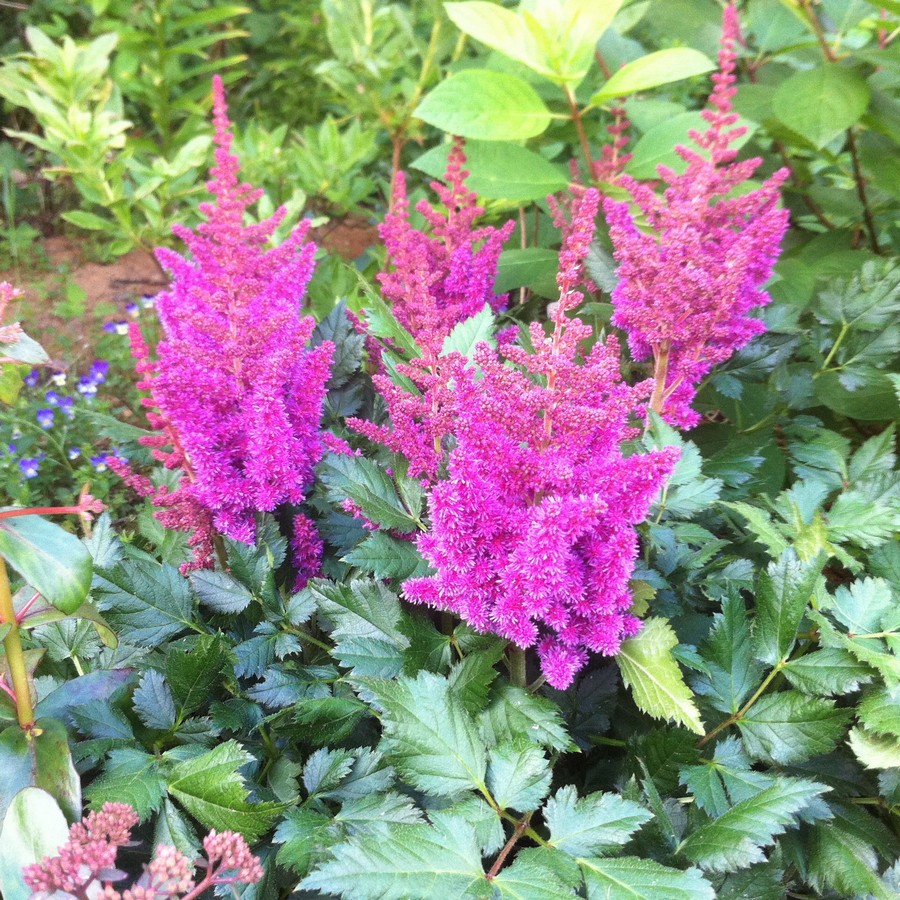 Рассада астильбы китайской Пумила (Pumila) вырастает в строгое, но привлекательное растение, характерное своей декоративной блестящей листвой и множеством воздушных сиреневых цветков на длинных черешках. Темные бутоны слегка бледнеют после распускания. Длина соцветий 20-25 см. Листва очень густая и расположена низко от земли.