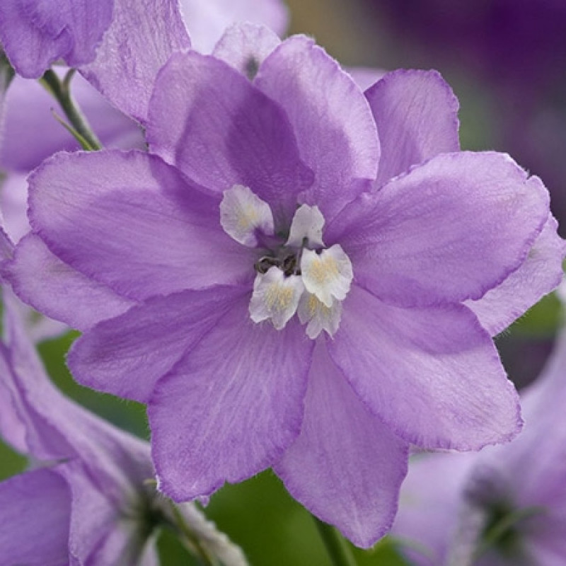 Рассада дельфиниума Лавендэр виз Вайт Би (Magic Fountains Lavender with White Bee) имеет зеленую листву и высокий стебель который плотно покрывается цветочками. Цветет в июне-июле. Цветки в диаметре около 3 см и имеют лавандовый окрас. Преимущество дельфиниума Лавендэр виз Вайт Би: - любит солнечные лучи - неприхотлив в уходе - хорошо переносит жару Семена дельфиниума Лавендэр виз Вайт Би садят на безветренных участках. Для быстрого роста и обильного цветения следует подкармливать несколько раз в месяц. Нужно не допускать перелива и застоя воды. Цветение подходит для срезки.