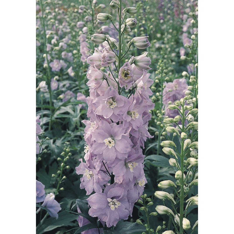 Рассада дельфиниума Камеллиард (Pacific Giant Camelliard) имеет темно-зеленую листву и вырастает в высоту до 150 см. Период цветение попадает на июнь-июль. Соцветие высокое, плотно укрытое крупными цветами светло-сиреневого цвета. Удачно смотрится на любом садовом участке. Достоинства Камеллиард: - хорошо переносит засуху - может зимовать без укрытия - многочисленное цветение Семена дельфиниума Камеллиард предпочитают богатую на минералы, рыхлую почву. Хорошо растет в полутени или на солнечных участках. В период цветения рекомендуется подкармливать.