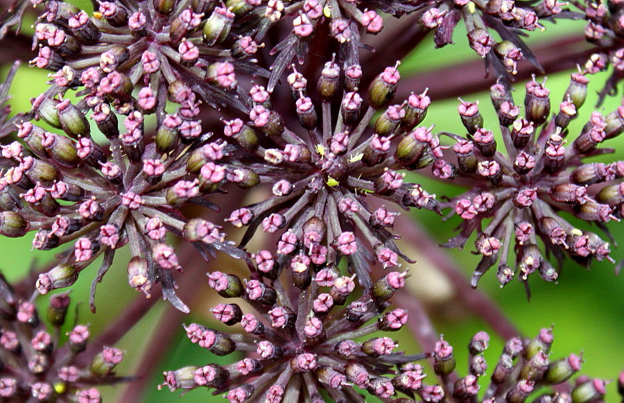Рассада Дудника гигантского становится украшением любого сада во время цветения, то есть, начиная со второй половины июля. Это растение имеет эффектный внешний вид и никогда не остается незамеченным. У него плотный и короткий корень, одиночный стебель, на котором располагаются большие листья и соцветия темно-бордового цвета. При правильном уходе соцветия вырастают до 20 – 30 см в диаметре. Данный сорт рекомендуется высаживать во влажной почве на солнце или в тени. Дудник гигантский относится к типу монокарпических растений, которые зацветают и плодоносят всего 1 раз. Пересаживать можно только очень молодые побеги, так как после пересадки растение часто гибнет.