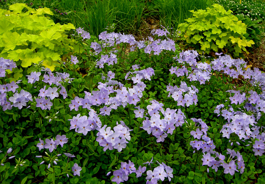 Флокс сорта Blue Ridge (Блуе Ридж) после посадки образует дернинки, которые быстро разрастаются посредством коротких и легко укореняющихся побегов. Высота растения не превышает 20 см. Цветы его сиренево-голубые не очень яркие. Они собраны в пышные шапки соцветий. Лучшим местом для посадки флокса Блуе Ридж станет полутень с влажной почвой. Там растение сможет долго и обильно цвести, начиная с конца весны. Отлично флокс приживается и на солнце, но там кусты разрастаются не слишком сильно. Растение отличается хорошей зимостойкостью даже без дополнительного укрытия. Поливать его следует только во время засухи.