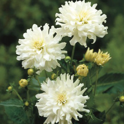 Луковицы георгины махровой Аспен (Aspen, DÁHLIA VARIABILIS) отлично приживаются, хорошо переносят неблагоприятные погодные условия. Клубневое бордюрное декоративное растение не требует особого ухода, любит солнечные места, защищенные от ветра. Формирует компактные кустики с густыми листьями, многочисленными бутонами. В период роспуска диаметр белоснежного цветка доходит до 10 сантиметров, высота куста равняется 40 сантиметрам. Растение радует обильным цветением с июля по сентябрь, становится настоящим украшением сада. Подходит для выращивания в квартирных условиях, на балконах.