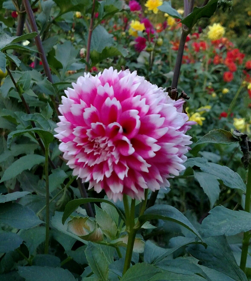 Окраска цветка : малиновые лепестки с зубчатыми белыми кончиками