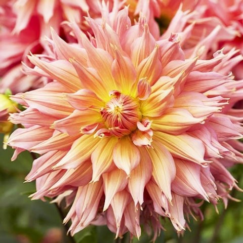 Луковицы георгины бахромчатой Омега (Dahlia Omega) выведены в Нидерландах в 2009 году. Сорт предназначен для оформления газонов и клумб. Растения гармонично смотрятся в групповых и одиночных посадках. Расти предпочитает на солнечных участках и плодородном грунте. Кусты высотой до 90 сантиметров. Период цветения длится с июля до октября до первых заморозков. Распустившиеся соцветия очень крупные, в диаметре около 20 сантиметров. Лепестки насыщенного оранжево-розового окраса.