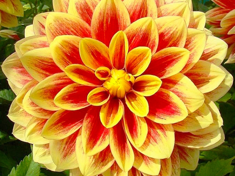Луковицы георгины Cabellero рекомендуют высаживать в питательную, умеренно влажную почву в мае месяце. Растение хорошо растет в любых условиях. Но если хотите, чтобы культура долго и обильно цвела, то выбирайте для посадки солнечные участки. Высота взрослого многолетника достигает до 90-110 см. Цветочки махровые, крупные, диаметром до 10-15 см, появляются в июне — июле. Основной окрас лепестка — красно-оранжевый. Край украшен желтыми тонкими мазками. Цветут георгины Cabellero до наступления осенних заморозков. На зиму клубни выкапывают и помещают в прохладное место.
