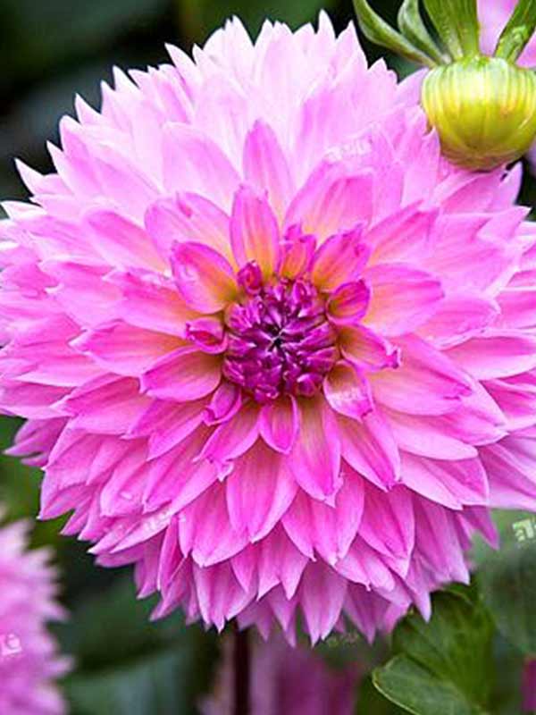 Луковицы георгины махровой Сакура Фубуки (Dáhlia variabilis Sakura Fubuki), выведенной в Японии, пользуются устойчивым спросом у цветоводов. С июля по сентябрь — восточная гармония и утонченность в вашем саду. Удивительный цветок как будто светится изнутри, его окраска напоминает цветение сакуры.  Продолговатые розово-сиреневые лепестки собраны в пушистые шапочки, а в нежно-желтом центре цветка будто спрятано солнце. Диаметр цветочной корзинки — 10-15 сантиметров. Высота куста — до одного метра. Стебли крепкие, не требуют опоры. Важно, чтобы место посадки хорошо освещалось солнцем и было защищено от холодных ветров.