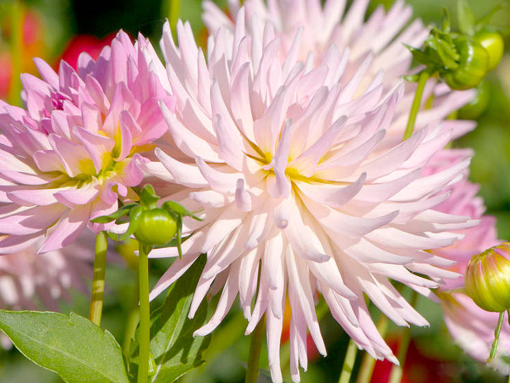 Клубни георгины Старс Леди (Dáhlia variabilis, Stars Lady), сенсационного кактусового вида голландского происхождения, пользуются заслуженным спросом у цветоводов. Куст заполнен яркими белыми цветами с мягкими розовыми кончиками. Лепестки махрового цветка элегантно скручены в трубочки, придают бутону форму игольчатого шарика. Кусты отличаются невысокими, но крепкими стеблями. Не нуждаются в опоре. На зеленом фоне густой листвы нежно-розовые бутоны, диаметром 10-12 сантиметров, выглядят особенно эффектно. Сорт идеально подходит для создания ландшафтных композиций в виде рабаток и бордюров. Хорошо смотрится в срезке.