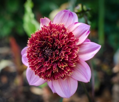 Клубни георгины Зе Фантом (Dáhlia variabilis, The Phantom) – посадочный материал высокого качества. Небольшого размера анемоновидные цветы, 10-12 сантиметров в диаметре, отличает необычное строение и окраска бутона. Центральные лепестки темно-пурпурного цвета короткие, сильно рассеченные, плотно собраны в тугой пучок. Краевые – удлиненные. Отличаются нежно-лиловым цветом, создают изысканное обрамление. Цветение непрерывное, с июля по сентябрь. Невысокие компактные кусты достигают высоты 60-100 сантиметров. Побеги сильные, устойчивые, в подвязке не нуждается. Георгина голландской селекции The Pantom хорошо смотрится на клумбе и пригодна для выращивания в контейнерах.