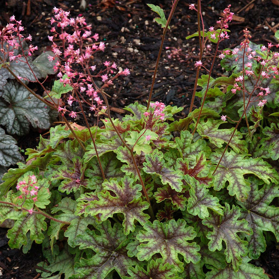 Рассада гейхереллы Тапестри (Tapestry) – декоративное многолетнее растение. В высоту достигает около 20 – 25 см. На русский язык переводится как «Гобелен», отличается своей таинственно-манящей красотой голубовато-зелёных листьев и яркими розовыми цветами. Быстро размножаются, несмотря на меняющиеся погодные условия. Семена следует проращивать в местах хорошо освещённых, с питательной почвой.