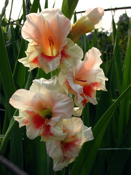 Луковицы гладиолуса гибридного Blush любят расти на хорошо освещенных участках, защищенных от ветра. К почве растение неприхотливо. В уходе важно не допускать переувлажнения. Культура высокорослая. Длина отдельных стеблей может достигать до 150 см. Побеги мощные, плотные. Соцветия крупные, состоят из ароматных цветов. Лепестки бутонов имеют пеструю окраску: на бело-розовом фоне красиво смотрятся красные мазки. Цветет гладиолус гибридный с конца июня до сентября и радует не только красивыми оттенками, но и приятным цветочным ароматом.