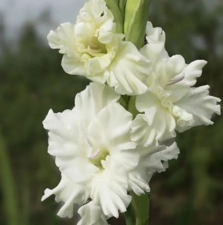 Гладиолус гофрированный сноуи раффл - это великолепное растение, которое поразит вас своей изысканной красотой. Его стебель высотой от 80 до 110 см украшен нежными белоснежными цветками, создающими впечатление пушистых облаков. Листья гладиолуса имеют элегантную форму и придают растению особый шарм.
