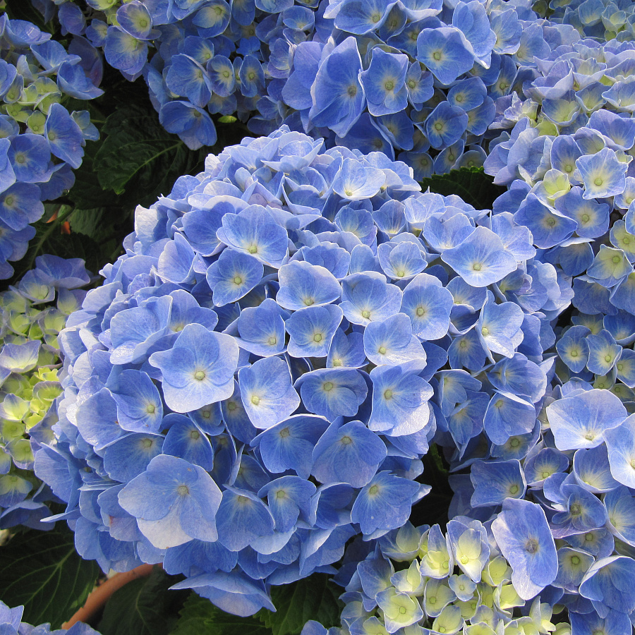 - оттенок цветов зависит от почвы. На кислой – от светло-голубого до насыщенно-синего, а при нейтральной кислотности цветы приобретают розовые тона;