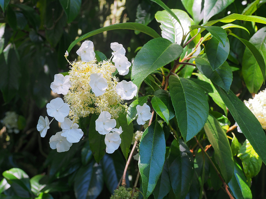 Саженцы гортензии плетистой порадуют любителей эффектных растений, с помощью которых можно украсить ограждения и садовые постройки. Разрастаясь, стебельки цепляются за выступы на вертикальных поверхностях, что позволяет им подниматься на высоту до 300 сантиметров. В июле распускаются крупные соцветия, состоящие из многочисленных белых цветов разного диаметра. Гортензия широко используется в вертикальном озеленении. Растение легко переносит формирующую стрижку, которая необходима для сохранения баланса. Место посадки следует мульчировать, что защитит почву от пересыхания.