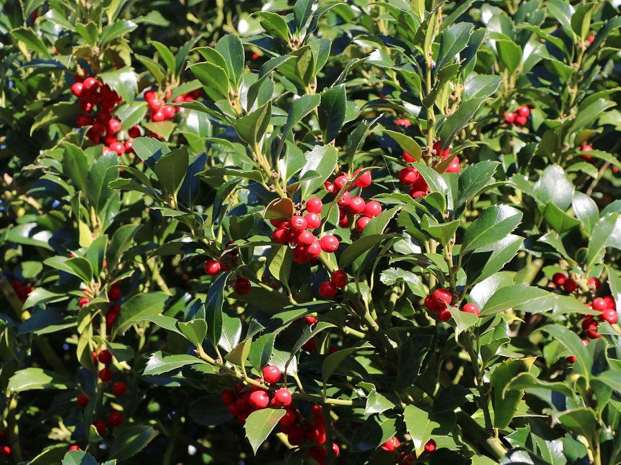 Саженцы Падуба Мезерва Хекенпрахт (Heckenpracht) – интересный и красивый вид падуба. Веточки саженцев расположены вертикально и в будущем вырастут до двух метром в высоту. Кустарник каждый год становится больше на 15-25 сантиметров. Упругие веточки обильно покрыты листвой глубокого зелёного цвета. Каждый листок по краям украшен ярко выраженными зубчиками, они выглядят прочными, но совсем не колются. Располагать падуб стоит на плодородной земле, умеренной влажности. Этот сорт хорошо соседствует с другими растениями. Зимой нет необходимости укрывать кустарник. Всю зиму на ветках будут висеть красные ягодки бусины. Они эффектно смотрятся среди тёмных, кожистых листьев.