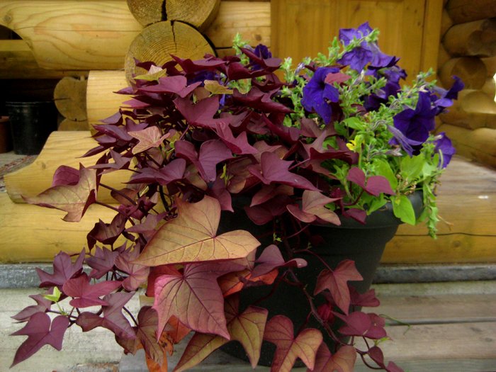 Рассада ипомеи Батат Свит Каролайн (Ipomoea Sweet Caroline) – относительно новая разновидность декоративных растений. Чаще всего используют для высадки в кашпо, подвесные контейнеры. Данная серия образует пышные кусты из очень красивой резной листвы, напоминающей по форме кленовую. Цвет листьев варьируется в зависимости от сорта – зеленый, бордовый, красновато-пурпурный. Это декоративное травянистое растение может вырастать до 250 сантиметров в длину. Предпочитает богатые почвы. При достаточном освещении листья приобретают более интенсивную окраску, но нельзя допускать ожогов.