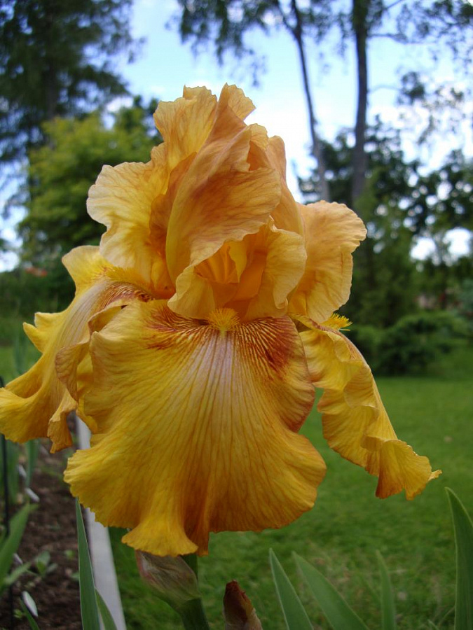 Окраска цветка : цветок желтый, нижние лепестки бронзовые с желтой каймой