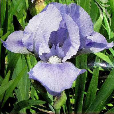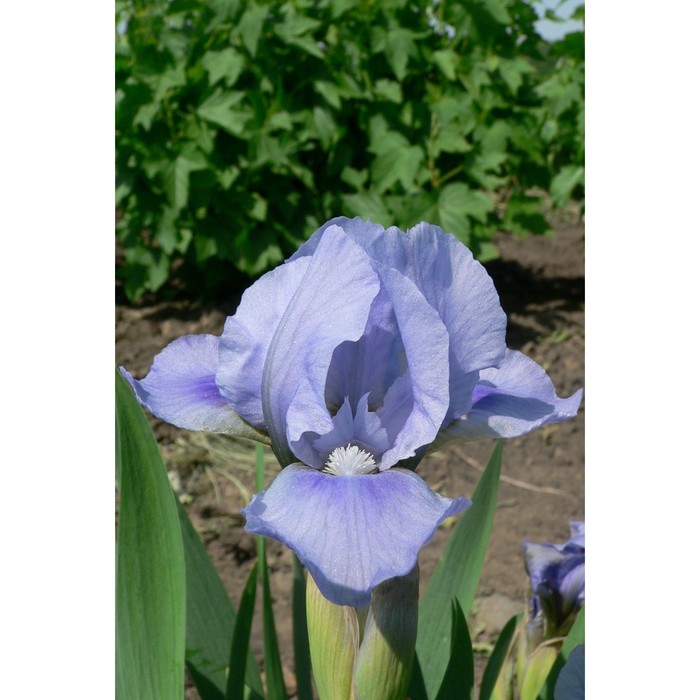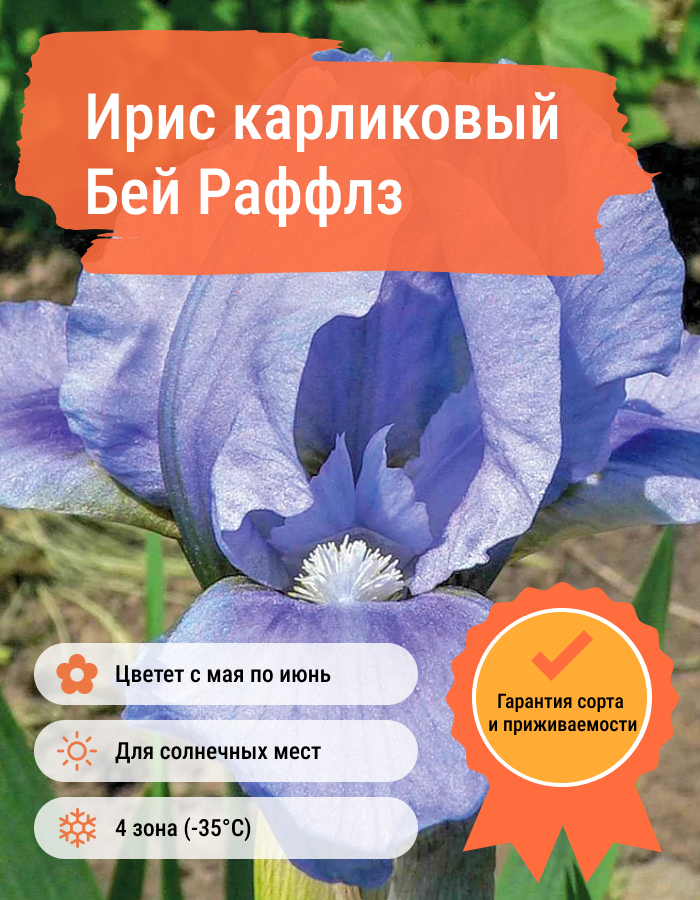 Рассада ириса германского Banbury Ruffles (Банбури Раффлс) представляет собой карликовый сорт ирисов, цветущий раньше всех своих родственников. Цветок вырастает фиолетового цвета, гофрированный. Длина цветоноса достигает 3 см. Листья у этого вида ириса сизоватые, широкие, прикорневые. В высоту растение достигает 35 см. Посадка семян может осуществляться осенью, весной или летом (после того как ирис отцвел).