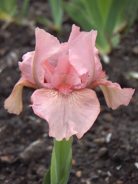 Окраска цветка : Цветок окрашен в розовый цвет с тёмно-розовым пятном на бородке. Красивые зеленовато-коричневые жилки