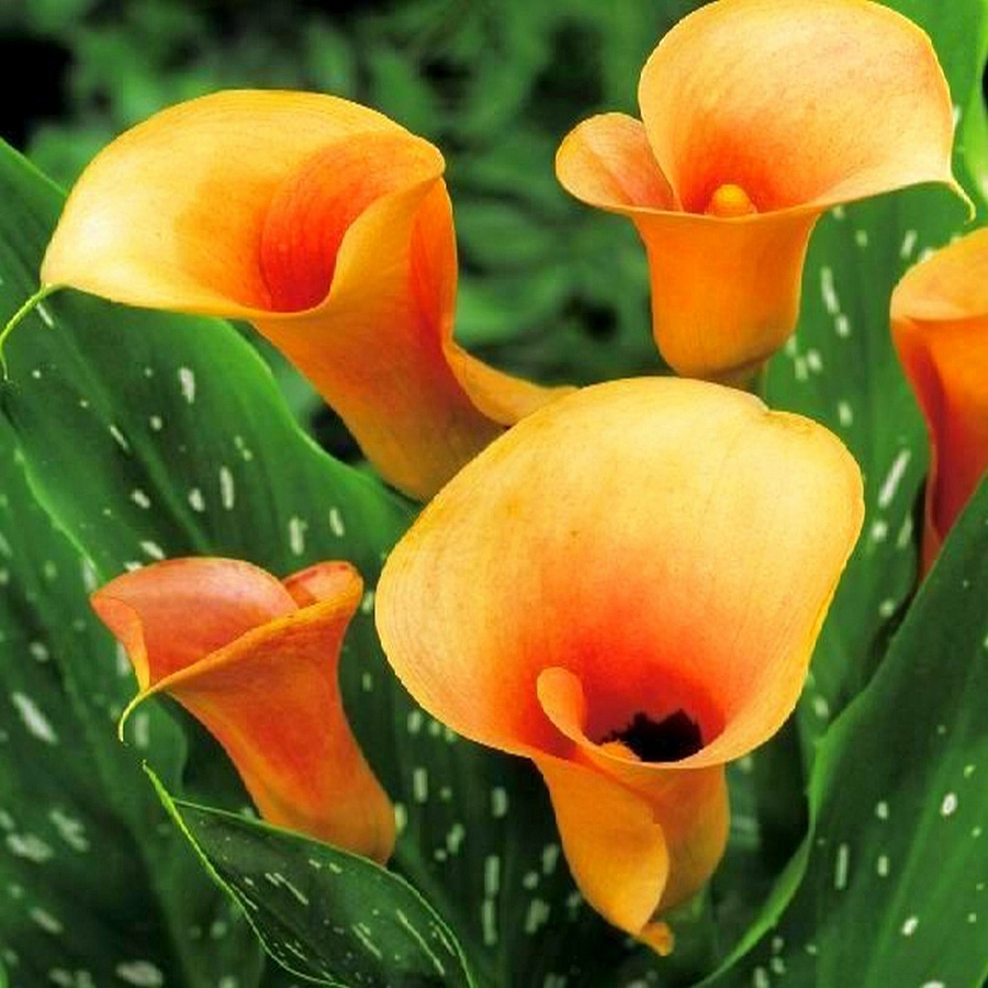 Калла хамелеон - это удивительное растение с желто-оранжевыми цветками, которые напоминают яркое пламя. Его зеленая листва с белыми штрихами добавляет изюминку в любой садовый уголок. Этот многолетник достигает высоты до 60 см и цветет в июле-августе, радуя глаз своими крупными цветками диаметром до 17 см. Калла хамелеон предпочитает солнечные или полутенистые места на дренированных богатых почвах. Он прекрасно подойдет для посадки на газоне, в групповых или одиночных посадках, а также у пруда.