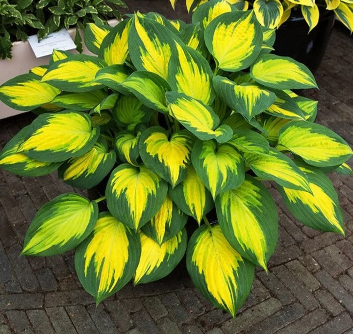 Хоста Гибридная Форбидден Фруит (Forbidden fruit Hosta hybridum) украсит любую клумбу своей необычной раскраской листьев. Они имеют ярко-желтый центр, который со временем теряет окраску и становится практически белым. По краю лист насыщенно-зеленый. Такое растение само по себе смотрится ярко и оригинально, а в июле-августе на нем появляются еще и небольшие лавандовые цветы. Цветоносы вырастают на высоту 40-50 сантиметров, они красиво смотрятся на фоне сплошной зелени. Forbidden fruit Hosta hybridum хорошо растет при затенении, но можно выращивать его и на солнечных участках.