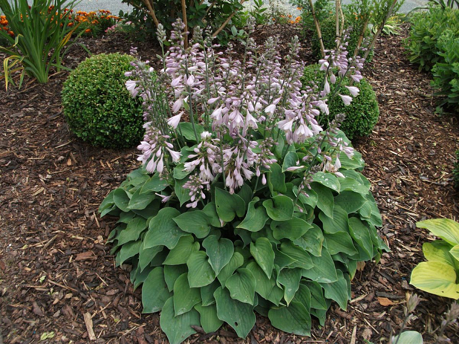Хоста сорта Pearl Lake (Пёрл Лейк) является карликовым кустарником не больше 7 см в высоту с листьями округлой сердцевидной формы темно-зеленого оттенка. Обильное цветение происходит в июле и августе. Кустарник намного лучше развивается в полутени, но при необходимости нормально ощущает себя и в тени. Цветки его лиловые на больших цветоносах, возвышающихся на 25 см над землей. Чаще всего хосту Пёрл Лейк размещают в саду из-за красивых листьев, благодаря которым декоративность растения сохраняется постоянно. Данный сорт будет прекрасно сочетаться на участке с мшанкой, с карликовыми видами астильбы, с камнями и т.п.