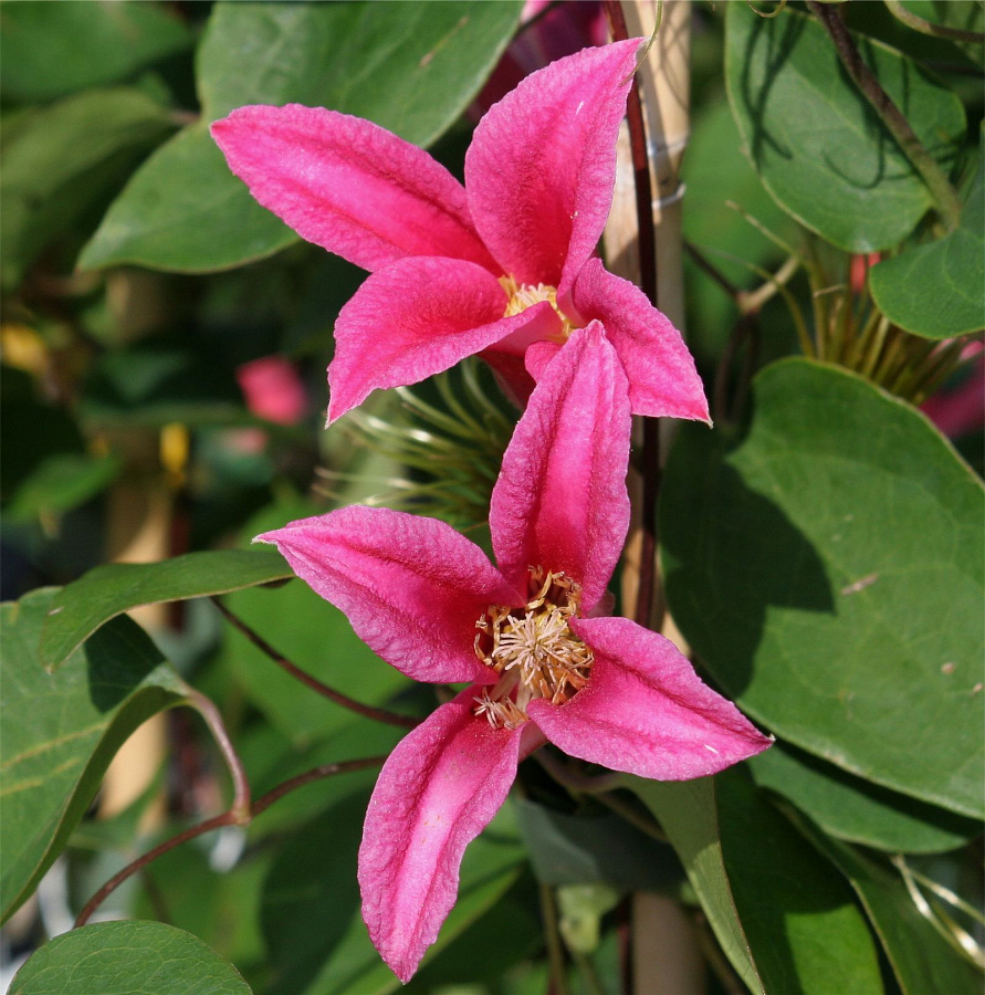 Саженцы клематиса гибридного Хэппи Диана (Happy Diana) предпочитают защищённые и хорошо освещенные участки с плодородной почвой. Цветки диаметром 4-7 см, по форме напоминают лилиецетные тюльпаны, темно-розовые. Цветет обильно и продолжительно с июня по сентябрь. Клематис гибридный Хэппи Диана (Happy Diana) благодаря листовым хвостикам способен лазать на высоту до 400 см, рекомендуется высаживать возле беседок, арок, вдоль ограждений и других садовых конструкций. Подходит как для групповых посадок, так и для отдельно стоящей шпалеры.