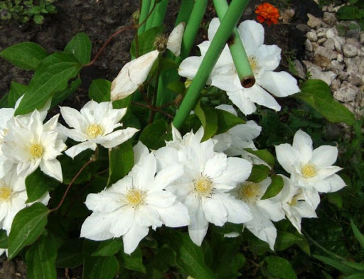 Саженцы клематиса гибридного Исаго (Isago) неприхотливы, хорошо растут и развиваются на солнечных или хорошо освещенных местах, защищенных от ветра. Для выращивания подходят плодородные, легкие по механическому составу почвы. С мая по июнь на клематисе гибридном Исаго (Isago) распускаются махровые снежно-белые цветки, диаметром 10-13 см, в августе-сентябре растение зацветает повторно, но цветки полумахровые. Способен лазать на высоту до 300 см, используют для декорирования арок, беседок, искусственных и естественных опор.