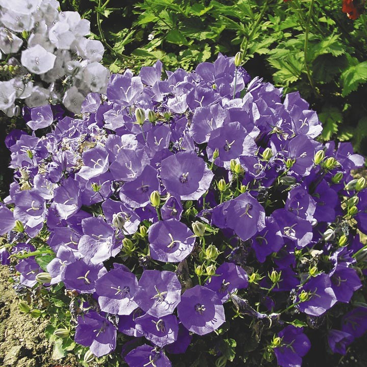 • оконные ящики. Семена колольчика также порадуют тех, кто любит составлять миниатюрные букеты. Взрослое растение представляет собой куст диаметром около 40 см и высотой не более 30 см. Для посадки рассады колокольчика подходит почва любого типа. Кусты отлично развиваются на солнечных участках, а также нормально растут в полутени.