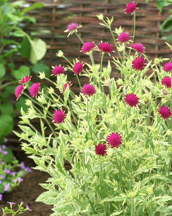 Саженцы короставника македонского Тандер энд Лайтнинг (Thunder and Lightning) порадуют великолепным внешним видом, морозостойкостью и неприхотливостью в уходе. Листья многолетника имеют оригинальную двухцветную окраску, на фоне которой ярко выделяются шарообразные пурпурные цветы, которые распускаются в начале лета и сохраняют декоративность до сентября. Этот сорт используют для заполнения пустующих участков сада или создания ярких смешанных композиций. Уход заключается в регулярных поливах, прополке и рыхлении поверхности земли.
