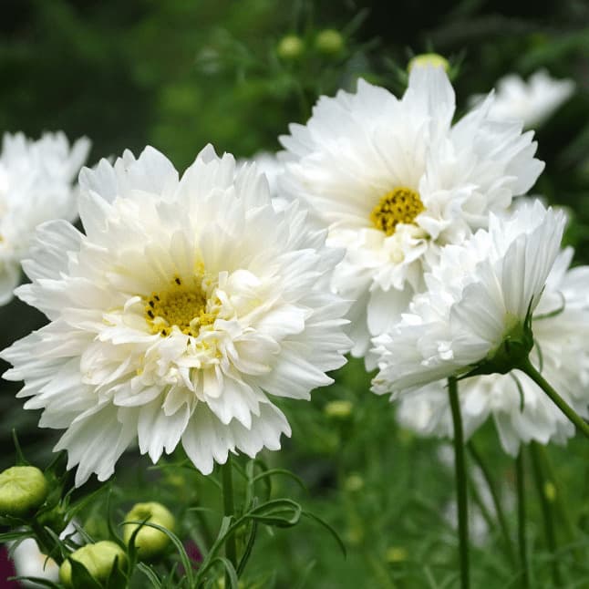 Цветение этого растения приходится на весну и лето, что позволит вам наслаждаться его красотой на протяжении длительного времени. Космея Психе Вайт прекрасно смотрится в групповых посадках, создавая неповторимый акцент в вашем саду.