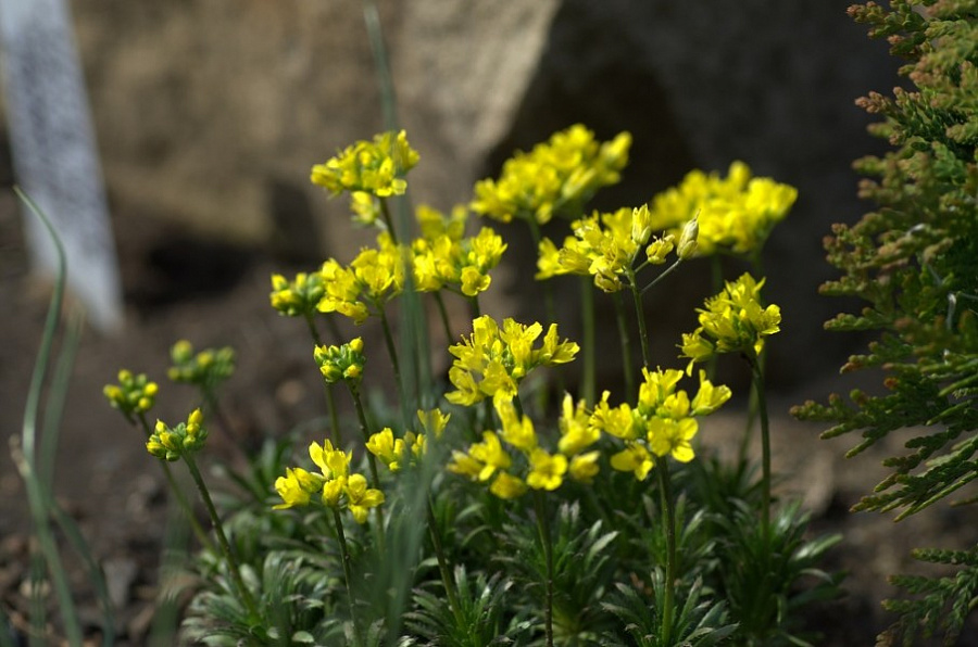 Рассада крупки вечнозеленой создает на клумбе неповторимые коврово-подушечные дерновины благодаря своему небольшому росту и густым соцветиям. Рассада крупки уникальна по своим свойствам: