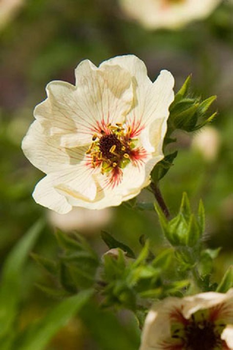 Рассада Лапчатки гибридной Vogue (Вог) зацветает в начале июля и цветет до конца лета нежными белыми цветками, серединка цветков - желтая с красными вкраплениями, диаметр цветка - 4 см и меньше, взрослое растение высотой 40 см. Размножать можно делением, черенками, семенами, которые можно сеять в теплое время. Эта лапчатка, как и все ее сородичи, хорошо подходит для украшений изгородей и рабаток, бордюров, а в силу своего окраса замечательно будет сочетаться с колокольчиками и верониками.