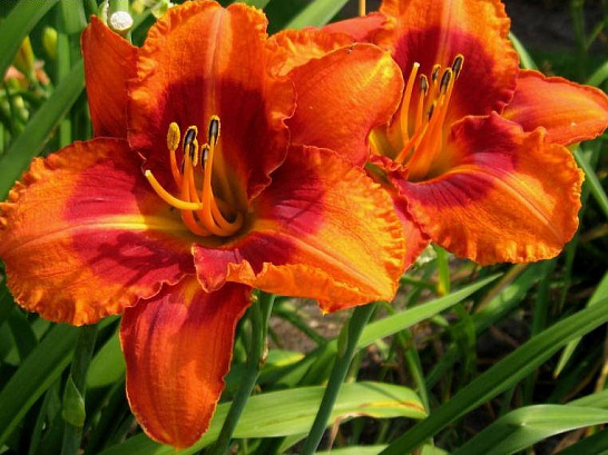 Рассада лилейника "Герцог Дарем" (Duke of Durham) в хорошо удобренных и влажных почвах он достигает 73 см. Идеальным соседством будут низкорослые сорта многолетников и однолетников. Место посадки рассады лилейника "Герцог Дарем" нужно обязательно хорошо утрамбовывать и пролить, чтобы обеспечить высокую приживаемость. Цветение с июня по август. Медно-оранжевые цветки имеют малиновые пятна чуть выше желтого горла. Края лепестков не столь гофрированы, сколько кажутся скомканными. Диаметр цветочков до 15 см.