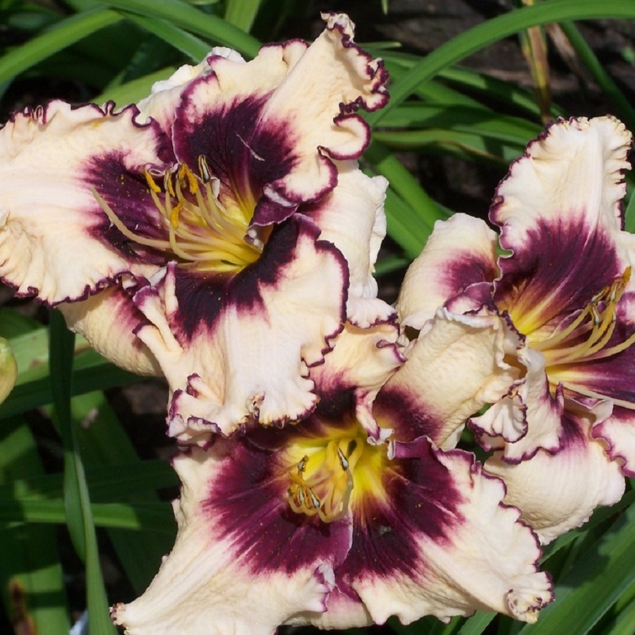 • Окраска цветка : белый с тёмно-бордовым глазком и каймой, горло зелёное