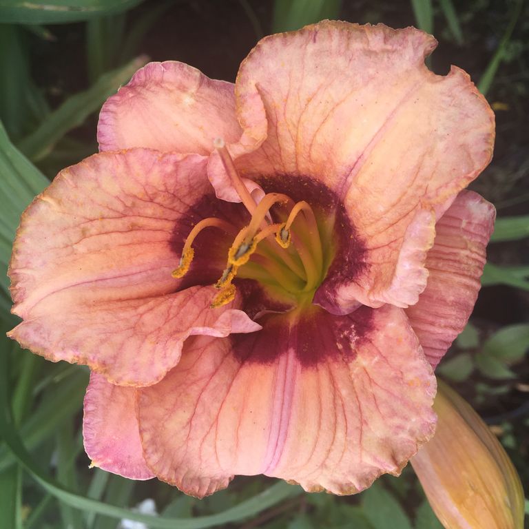 • Окраска цветка : лососевый с пурпурным глазком и зелёным горлом