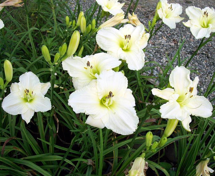 Рассада лилейника Вайт Тэмптэйшн (White Temptation) подарит вашему саду красивые цветы на высоких стеблях. Такой сорт пригоден как для выращивания на клумбах, так и для срезки в букеты или на цветочные декорации. Семена растения неплохо переносят хранение и весной уже могут прорасти для получения рассады. Корни достаточно устойчивы для перезимовки в грунте без дополнительных укрытий. Цветок лилейника Вайт Тэмптэйшн практически белый, с легким кремовым оттенком, а его горлышко зеленоватое. Лепестки фактурные, с гофрированными краями. Увидеть появление прекрасных цветов этого сорта можно уже в июле.