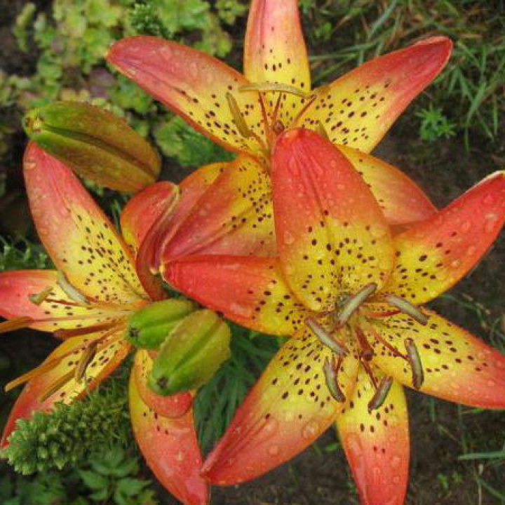 Саженцы и рассада Лилии азиатской Италия (Lilium asiatic Italia) отличаются морозостойкостью, быстрым и легким размножением и неприхотливостью в уходе. Стебли высотой до 90 см заканчиваются несколькими бутонами, которые раскрываются в июле. Цветки чашевидные шестилепестковые, диаметром до 17 см, двуцветные. Лепестки широкие у основания ярко желтые, от середины цвет переходит в темно-розовый ближе к красному. От основания до середины лепестка множество темных краповых точек. Идеальны для срезки, групповых посадок на клумбах и смешанных композиций для зонирования участков.