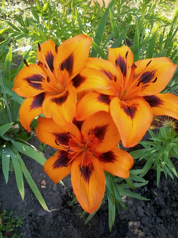 Окраска цветка : Цветки с широкими насыщенно-оранжевыми лепестками, по центру эффектное коричневое пятно