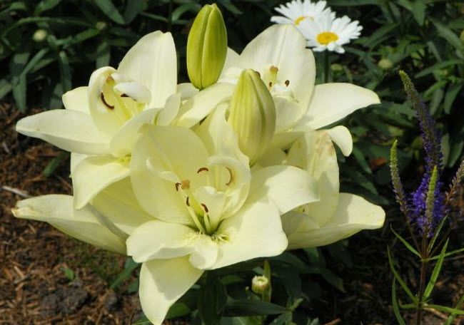 Луковицы Лилии азиатской махровой Аарон (Lilium asiatic Aaron) относятся к необычайно красивым гибридным сортам, выведенным в Голландии. Цветки отличаются крупными размерами, пышностью и белоснежным, без единого вкрапления, цветом. Несмотря на то, что растение высокое с прямостоячим и крепким стеблем, оно прекрасно подходит и для высадки в горшок. Но всю свою красоту Аарон покажет на открытом, освещенном участке в соседстве с другими цветами или сортами лилий с темными окрасками. Сорт неприхотлив в уходе, отлично переносит морозы и пересадку, прост в размножении.