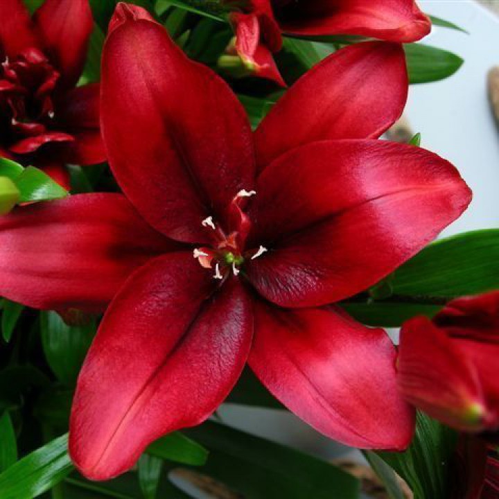 Луковицы Лилии азиатской махровой Блад Бразерс (Lilium asiatic double Blood Brothers) -  «изюминка» любого сада. Для восточной красавицы потребуется достаточно места, так как ее цветоносы растут не только вверх на высоту до 80 см, но и в стороны. Сорт ценится за очень большие (до 17 см) цветки насыщенного малиново-красного цвета, отличающиеся глянцевым блеском и махровостью. В течение двух месяцев, начиная с середины-конца июня, Блад Бразерс яркими пятнами выделяется на фоне остальных садовых растений. Удачно подобранные цветы-компаньоны создадут композицию удивительной красоты.