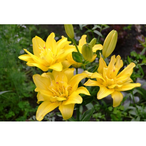 Луковицы Лилии азиатской махровой Сандью (Lilium asiatic Sundew) дают цветы такой необычайной формы, что даже садоводы со стажем задаются вопросом: «А лилия ли это?». Да! Это действительно она. Крупные (до 18 см в диаметре) цветы отличаются сильной махровостью, насыщенно-желтым цветом с редкими красными вкраплениями у центра и лепестками, направленными вверх. Растение высокорослое, может превышать в высоту один метр. Лилия неприхотлива, устойчива к грибковым заболеваниям и характеризуется повышенной морозостойкостью. Без труда размножается как луковицами-детками, так и чешуйками.