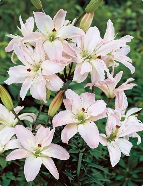Саженцы и рассада для открытого грунта Лилии азиатской махровой Спринг Пинк (Lilium asiatic double Spring Pinc) пригодны для выращивания в 4 зоне морозостойкости, в которую входит большинство регионов России, северные и горные районы Скандинавии. Многолетнее растение высотой 60-100 см с крупными цветами диаметром 15-17 см. Цветки нежно-розовые с переходом в белый цвет, с редкими яркими темно-пурпурными крапинками, от сердцевины на лепестках тонкий темно-малиновый кант. Махровыми цветы становятся на второй год жизни растения. Подходят для создания нежных букетов как смешанного так и моноцветкового типа. Используются в групповых посадках, миксбордерах, выгоняются для срезки.