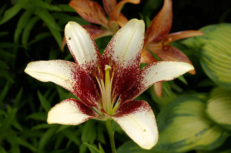 • Окраска цветка : кремовый с темно-бордовым крапом
