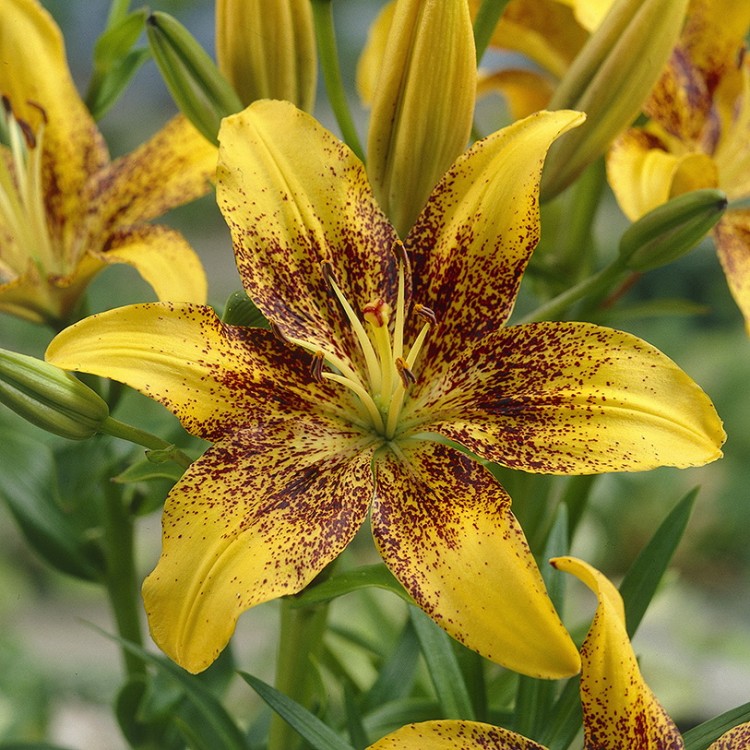 Лилия азиатская танго Тасмания - это великолепное растение с нежно-желтыми цветками, украшенными темно-коричневыми крапами у основания. Ее высота может достигать 100-120 см, а размер цветка поражает своей величественностью - до 17 см. Листья лилии имеют интересную форму, что делает это растение еще более привлекательным для глаз.