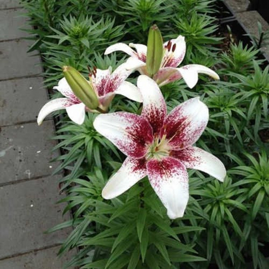 Луковицы Лилии азиатской Трайбал Кисс (Lilium asitic Tribal Kiss) ― посадочный материал для тех, кто не хочет выбирать между нежными и экспрессивными расцветками. В этом сорте объединены два оттенка: белый и насыщенный бордовый, рассыпающийся крапом по кончикам лепестков. «Изюминкой» лилии являются светло-зеленые тонкие отметины, проходящие по центру изящно выгнутых, с атласным блеском, лепестков.
