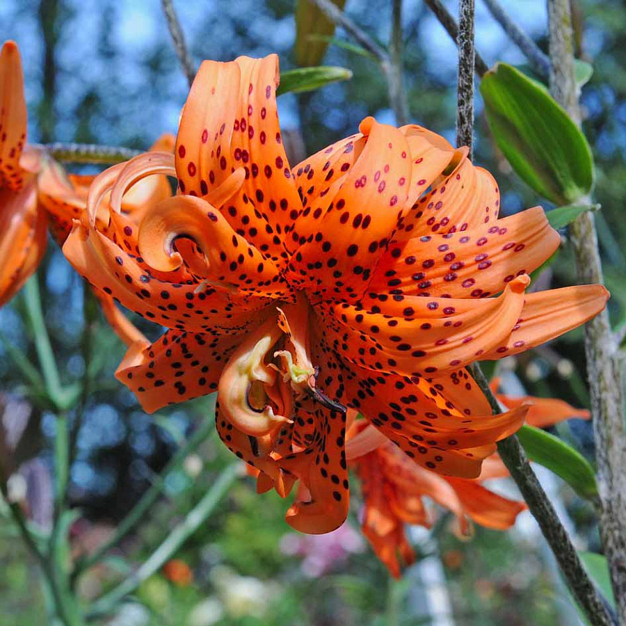 Луковицы лилии тигровой Флора Плена (Lilium, Flore Pleno) предпочитают влажные, дренированные плодородные почвы. Лепестки имеют интересный тигровый окрас — оранжевый с черным крапом. Цветут на протяжении 2 месяцев, с середины июля до начала сентября, источают приятный нежный аромат. Размножаются луковицами, растение производит их вдоль стебля. Высота взрослого растения достигает 90-110 сантиметров, диаметр цветка — 12-15 сантиметров. «Тигровая красавица» оригинально смотрится в композиции с многолетниками светлой цветовой гаммы. Украсит миксбордер, патио, рабатку, газон.