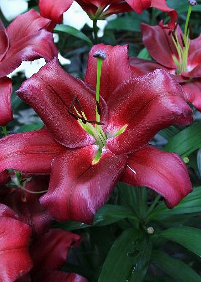 Луковицы лилии ОТ-гибрид Борелло (Lilium OT-Hybrid Borrello) подарят саду шик настоящей скромности и изящества. Высокие, до 140 см, многолетники неприхотливы в уходе и равнодушны к посадкам в местах с низкой освещенностью. Они предпочитают дренированные плодородные почвы и защиту от сильного ветра. Очень темная зелень выгодно расцвечивается ближе к середине лета крупными, около 28 см в диаметре, цветами сочной, темной розовато-малиновой окраски с ярко-зеленой, едва заметной серединой и мелкими темными пыльниками. Лепестки сильно загнуты на кончиках от центра и глянцево блестят на солнце.