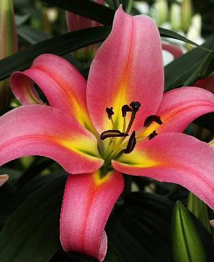 Лилия от-гибрид корсини - это великолепное растение, которое поразит вас своей красотой и изысканностью. Ее стебель достигает высоты до 250 см, а ярко-розовые цветки с жёлто-персиковым акцентом привлекают внимание своей неповторимой окраской. Лилия отличается душистым ароматом, который наполнит ваш сад невероятным запахом во время цветения весной и летом.