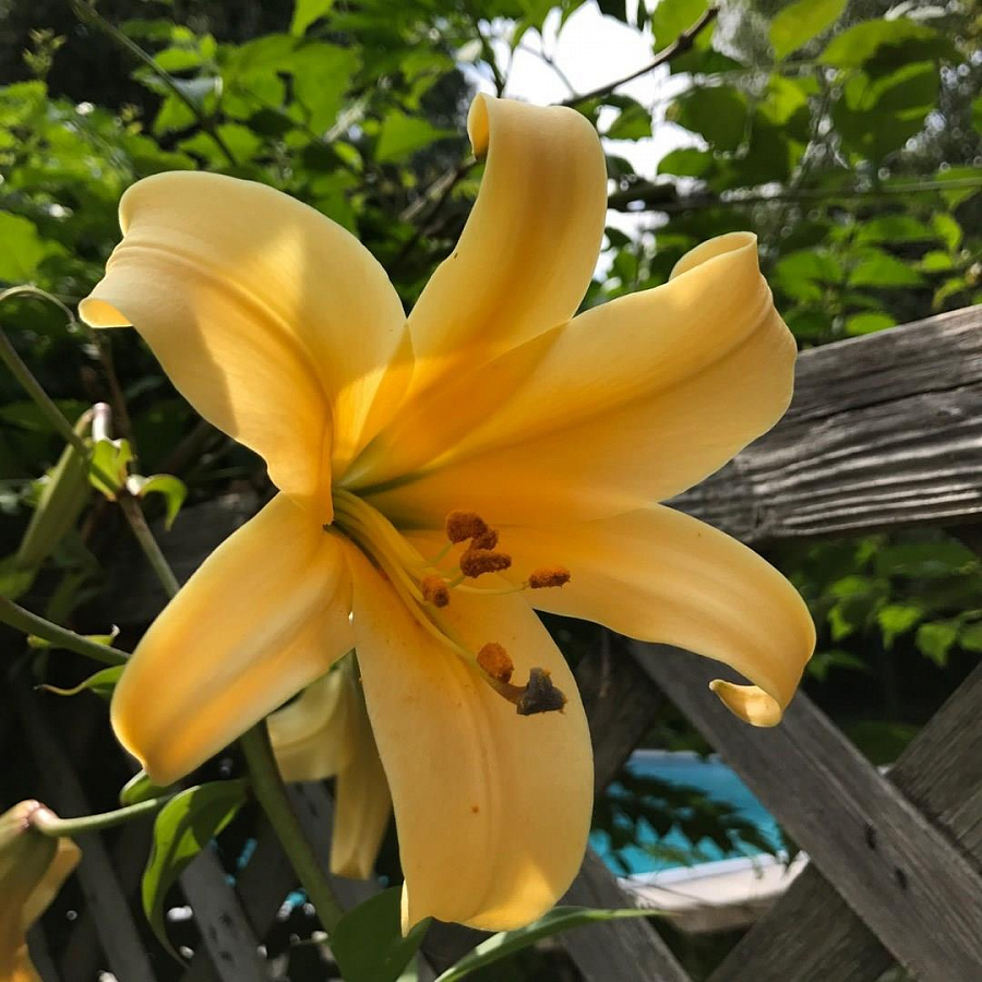 • Окраска цветка : крупный, абрикосовый с более светлыми кончиками и темно-красными пыльниками